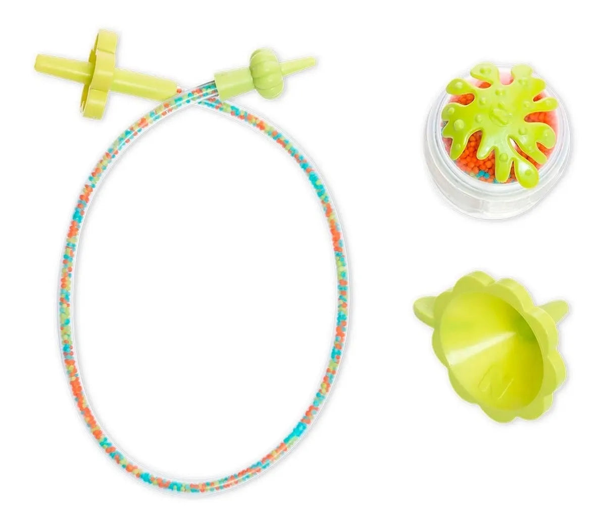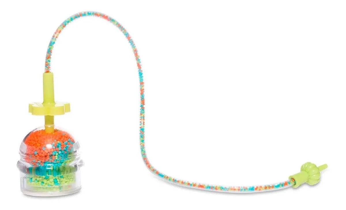 Neoalimento para Mikromerito. Coloca el alimento en el brazalete (se vende por separado) para alimentar a tu Mikromerito. Contiene 1 embudo, 1 tubo dispensador y 1 cápsula con grageas.